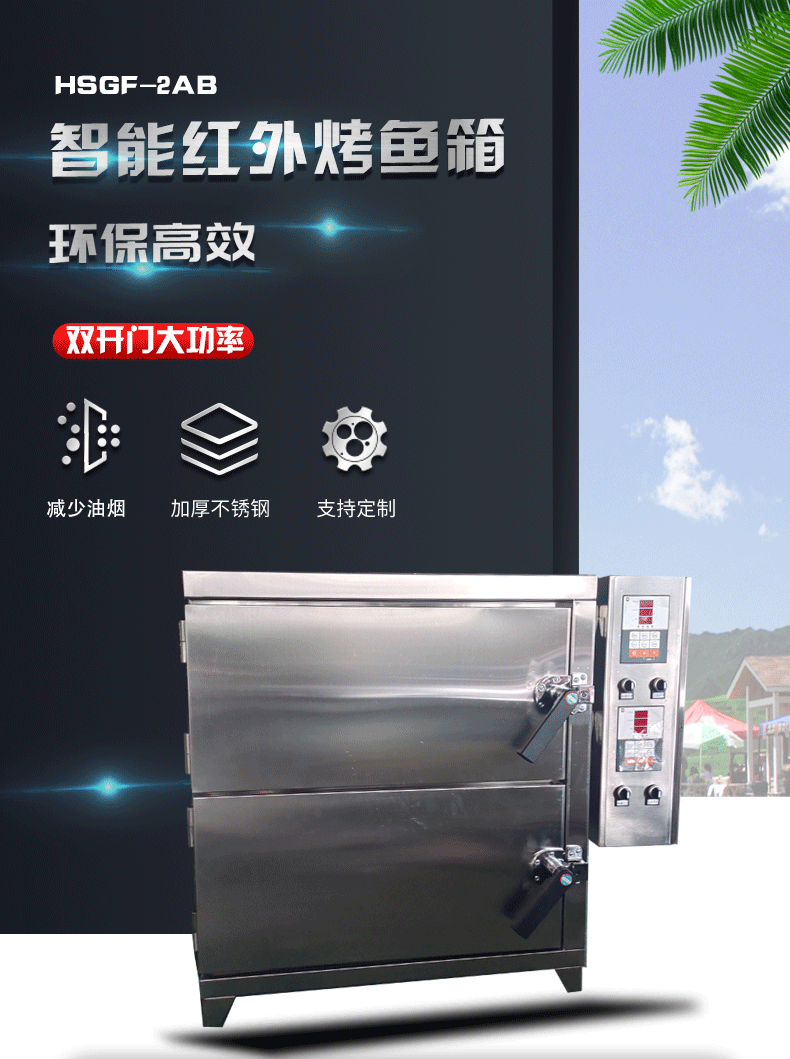 雙層雙盤烤魚箱,適合一天出魚量在四五十條魚左右的烤魚店。我公司是河南省生產智能紅外烤魚箱的廠家,該烤魚箱是國家專利審核過的產品,請大家放心訂購。此款烤魚箱不僅銷往本省區域,而且遠銷上海 北京 廣州 深圳 天津 重慶 蘇州 武漢 成都 杭州 南京 青島 長沙 無錫 佛山 寧波 大連 鄭州 沈陽 煙臺 濟南 東莞 泉州 南通 唐山 鎮江 滄州 西安 福州 長春 合肥 濰坊 徐州 常州 溫州 紹興 濟寧 淄博 鹽城 揚州 昆明 南昌 臨沂 東營 臺州 泰州 嘉興 洛陽 廈門 金華 南寧 襄陽 宜昌 邯鄲 泰安 榆林 惠州 威海 中山 保定 吉林 南陽 德州 岳陽 太原 聊城 常德 漳州 貴陽 淮安 衡陽 茂名 濱州 蕪湖 湛江 菏澤 柳州 株洲 許昌 江門 咸陽 周口 廊坊 湖州 宿遷等城市。恒晟牌烤魚箱典型客戶:小城漁家,魚貴人,魚酷,魚派,食客沸騰,巫山烤魚,烤功夫,諸葛烤魚,三國烤魚,萬州烤魚,重慶烤魚,七公江湖燒烤等。